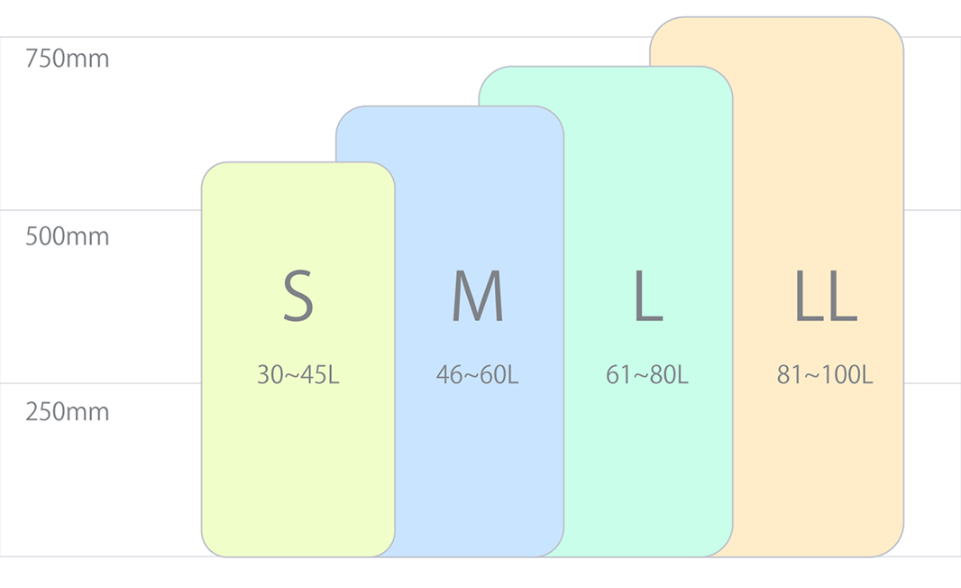 右のサイズ表を参考に